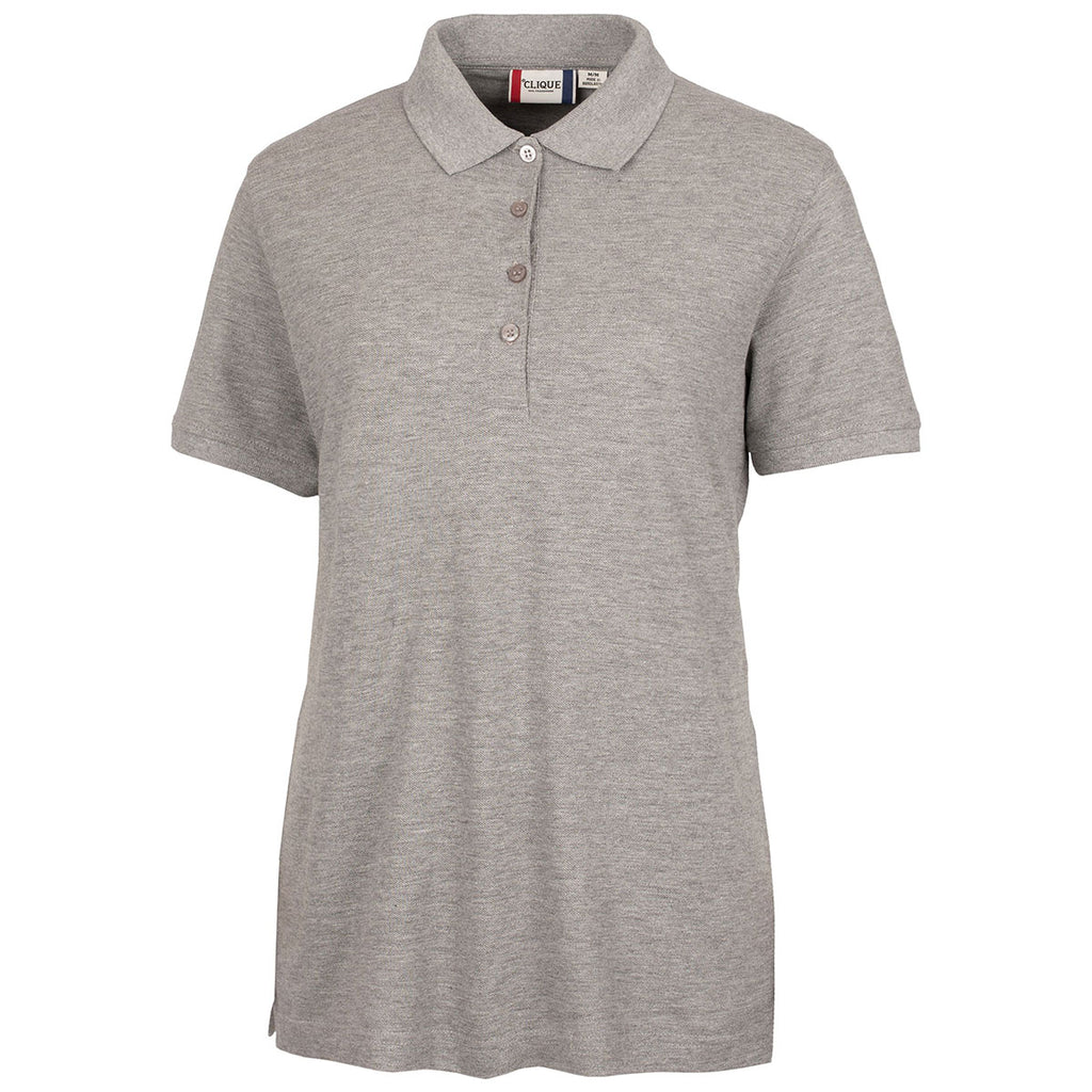 The Clique Women's Grey Melange Elmira Polo is perfect for casual Fridays at the office or wearing on an upcoming golf outing. With a company logo added, this polo shirt also makes for an ideal marketing tactic by getting the name of your company out there to be seen by all who wear this employee apparel. Available in vibrant colors, the polo shirt offers many welcome features such as 60% cotton/40% polyester blend material, pique knit style, 3M stain repellant treated fabric, four-button placket with dyed buttons, knit collar and cuffs, and side vents.Corresponding Men's Style:Clique Men's Grey S/S Evans Polo