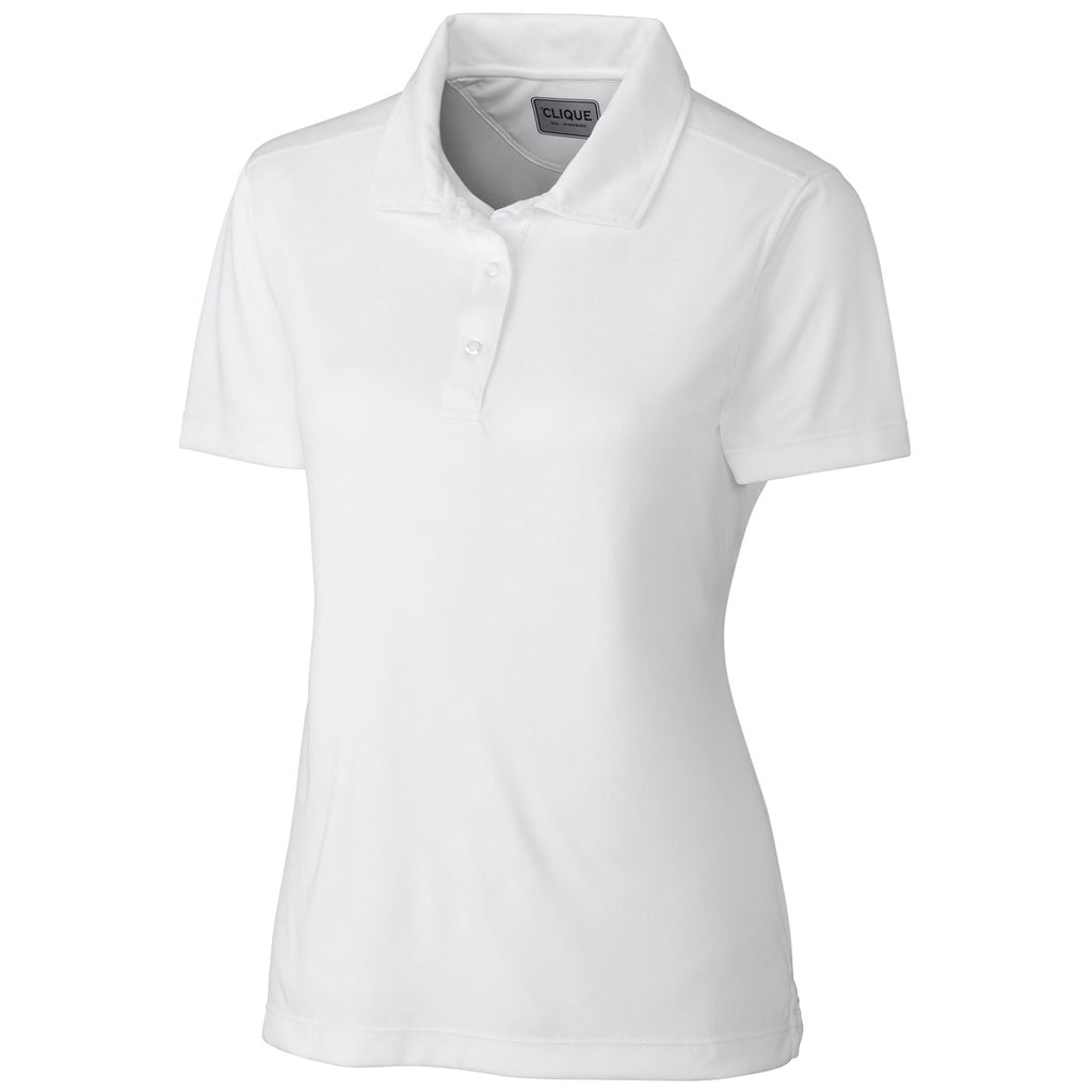 Moisture wicking technology makes the corporate logoed Clique Women's White Parma Polo the ultimate gift to hand out before the next company sponsored golf tournament. Wear the chic short sleeve shirt on the most humid days of the year and never have to worry about perspiration causing discomfort. Cover stitch detail ensure the versatile polo offers long lasting durability. Rugged 100% polyester interlock resists rips and tears to give you a go to polo for years to come. Add your company logo on the large embroidery area for expanding awareness of your brand at business seminars and conferences.Corresponding Men's Style: Clique Men's White S/S Parma Polo