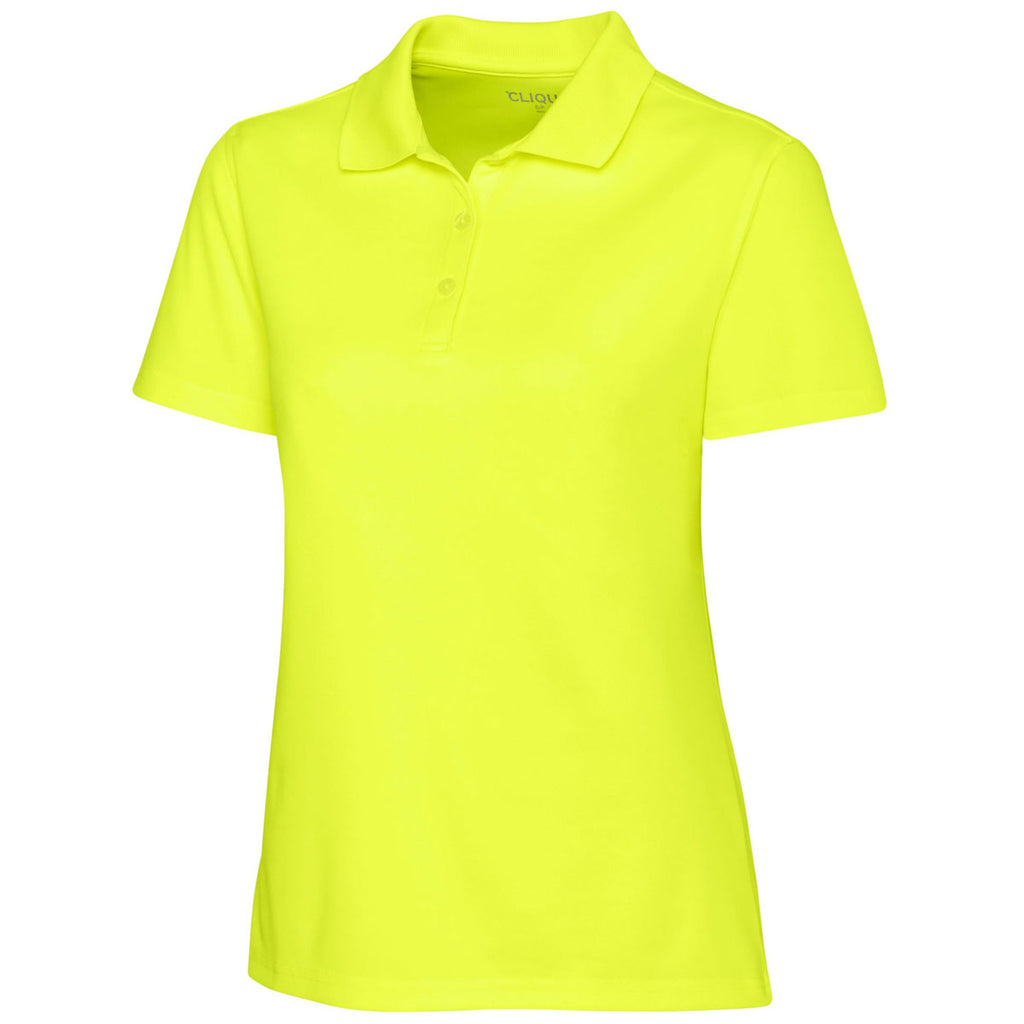 Dazzle your golf partners not only with your game, but also your fine taste in company apparel by wearing the Clique Women's Hi-Vis Yellow Spin Pique Polo. Versatile enough to wear at work and after work at your favorite restaurant, the stylish polo includes a large embroidery area for attaching your corporate logo. With a company logo, you stir interest in your products and services at professional networking events. The 100% spin-dye polyester pique polo withstands the punishment delivered by active lifestyles. Forward shoulders complement the rib knit collar to define what elegant, yet functional fashion should look like.Corresponding Men's Style: Clique Men's Hi-Vis Yellow Spin Pique Polo