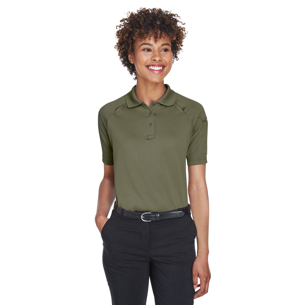 Help your employees stand out with the Harriton Women's Tactical Green Tactical Performance Polo in a variety of colors. The ideal employee apparel for those who need to look great with a company logo polo, but remain comfortable while on the job. Made of 100% polyester with a double pen pocket this polo allows your employees to look their best whether playing at a golf event or working a trade show. Showcase your company logo and increase brand awareness at the next recruiting event. Nothing draws attention more than employees who look their best while enjoying their job. Start your order right away.Corresponding Men's Style: Harriton Men's Tactical Green Tactical Performance Polo
