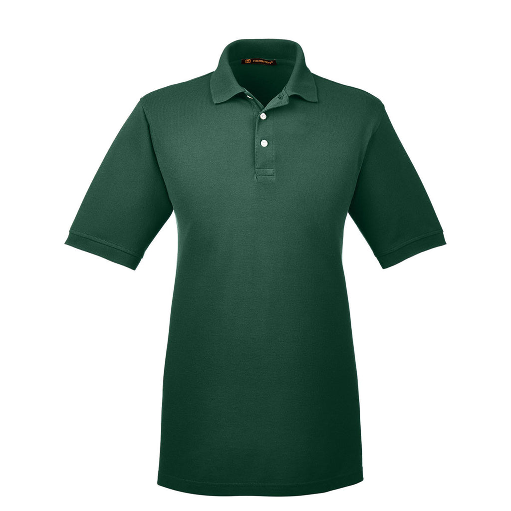 Thirty-five percent cotton pique and 65% rugged polyester pack a powerful fashion punch for the Harriton Men's Hunter 5.6 oz. Easy Blend Polo. The wrinkle resistant polo looks as fresh at the end of the day as it did the first thing in the morning. Blended cotton and polyester prevents the shrinkage that sends other types of polos to thrift stores. Set-in sleeves exude high fashion, while the hemmed bottom and side vents create a unique look that will grab the attention of everyone you meet. Attach your company logo to the large imprint area to take advantage of all the attention.Corresponding Women's Style: Harriton Women's Hunter 5.6 oz. Easy Blend Polo