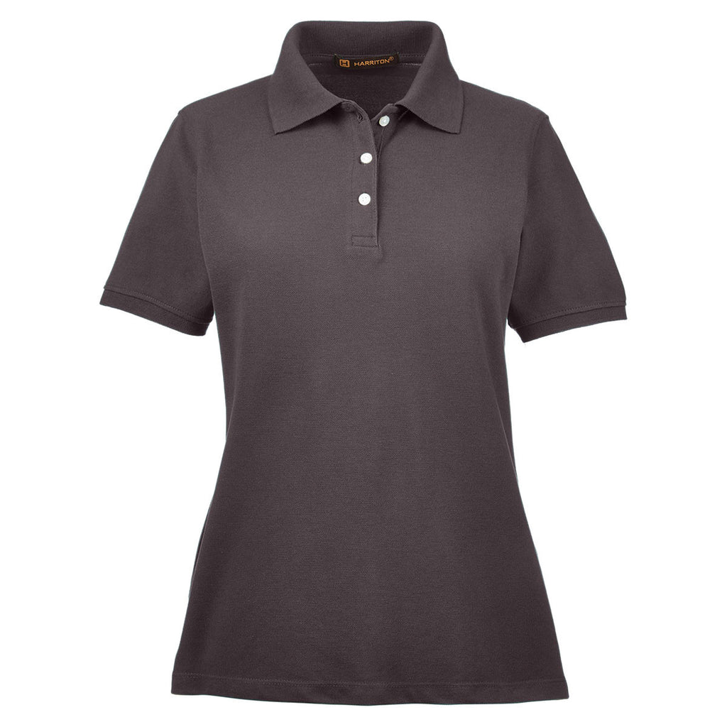 With a softly shaped design to create a more flattering feminine look, the Harriton Women's Espresso 5.6 oz. Easy Blend Polo is sure to turn heads at your next business seminar. The flat-knit collar and cuffs complement the three-button placket to produce a stylish polo to wear at the office, as well as outdoors working on home improvement projects. Blended cotton and polyester never wrinkles to keep you looking professional throughout the day. The silky soft fabrication reduces shrinkage to ensure maximum comfort for years to come. Attach a custom logo that attracts the interest of customer prospects.Corresponding Men's Style: Harriton Men's Espresso 5.6 oz. Easy Blend Polo