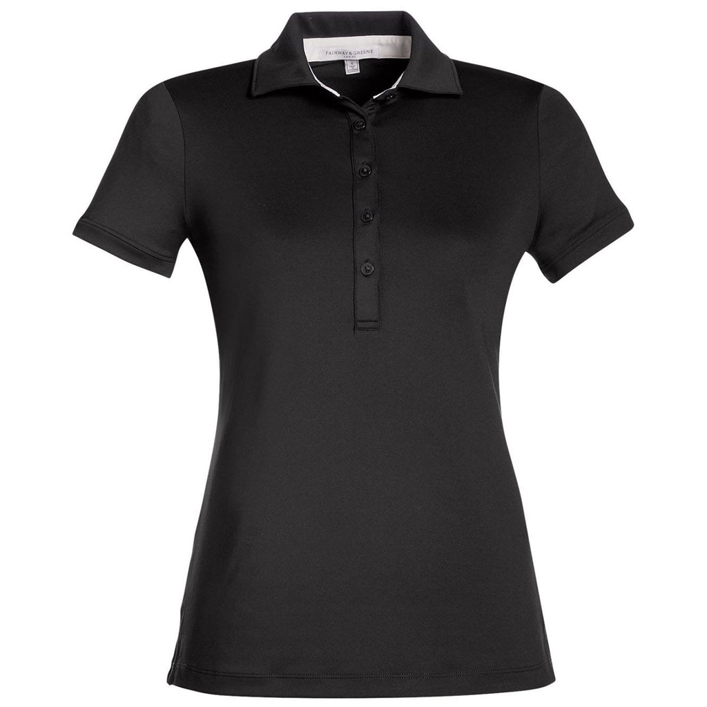Choose a custom logo for the Fairway & Greene Women's Black Claire Tech Polo for a versatile look that can move from the office to brunch to hanging out at home. Whether working the sales floor, playing with the kids, or simply creating a look, this moisture-wicking polo is a true must-have.Corresponding Men's Style: Fairway & Greene Men's Black USA Made Tournament Solid Tech Polo
