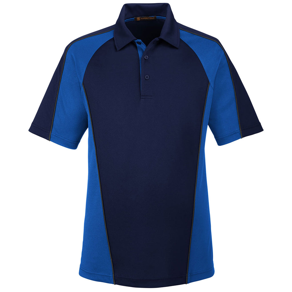 Be bold in a custom Harriton Men's Dark Navy/True Royal/Dark Charcoal Advantage Snag Protection Plus Colorblock Polo. This uniquely designed, 100% polyester snag protection plus jersey polo is perfect for going from work to dinner with friends in a single step. The bright colorblocking will get you noticed with a custom logo to support a team or organization or make employees easily recognizable with a company logo embroidered on. The three-button placket, contrast pearl buttons, and contrast piping add to the flair of this polo while side vents and industrial laundry testing allow it to last through several harsh days of work and wear.Corresponding Women's Style:Harriton Women's Dark Navy/True Royal/Dark Charcoal Advantage Snag Protection Plus Colorblock Polo