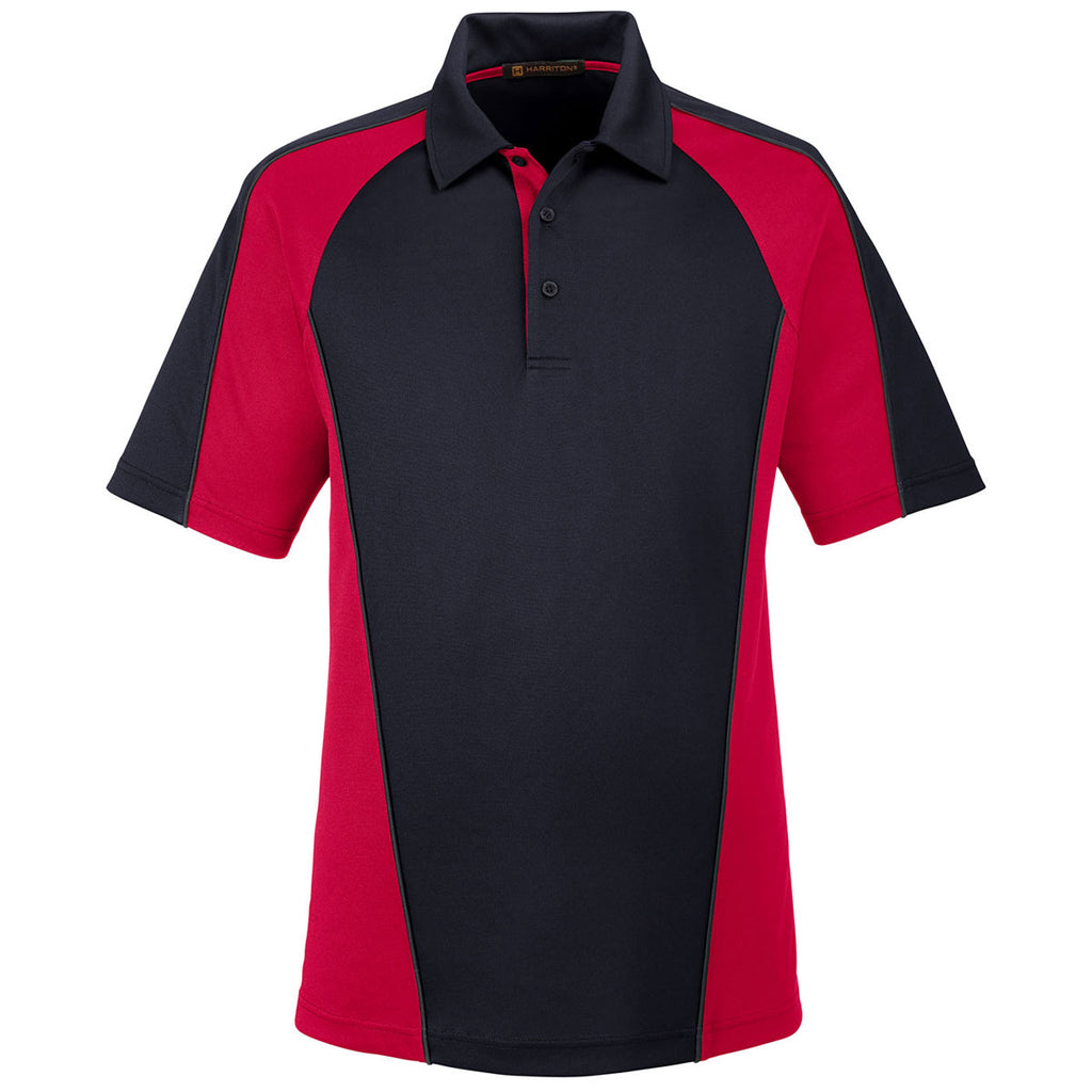 Harriton Men's Black/Red/Dark Charcoal Advantage Snag Protection Plus Colorblock Polo