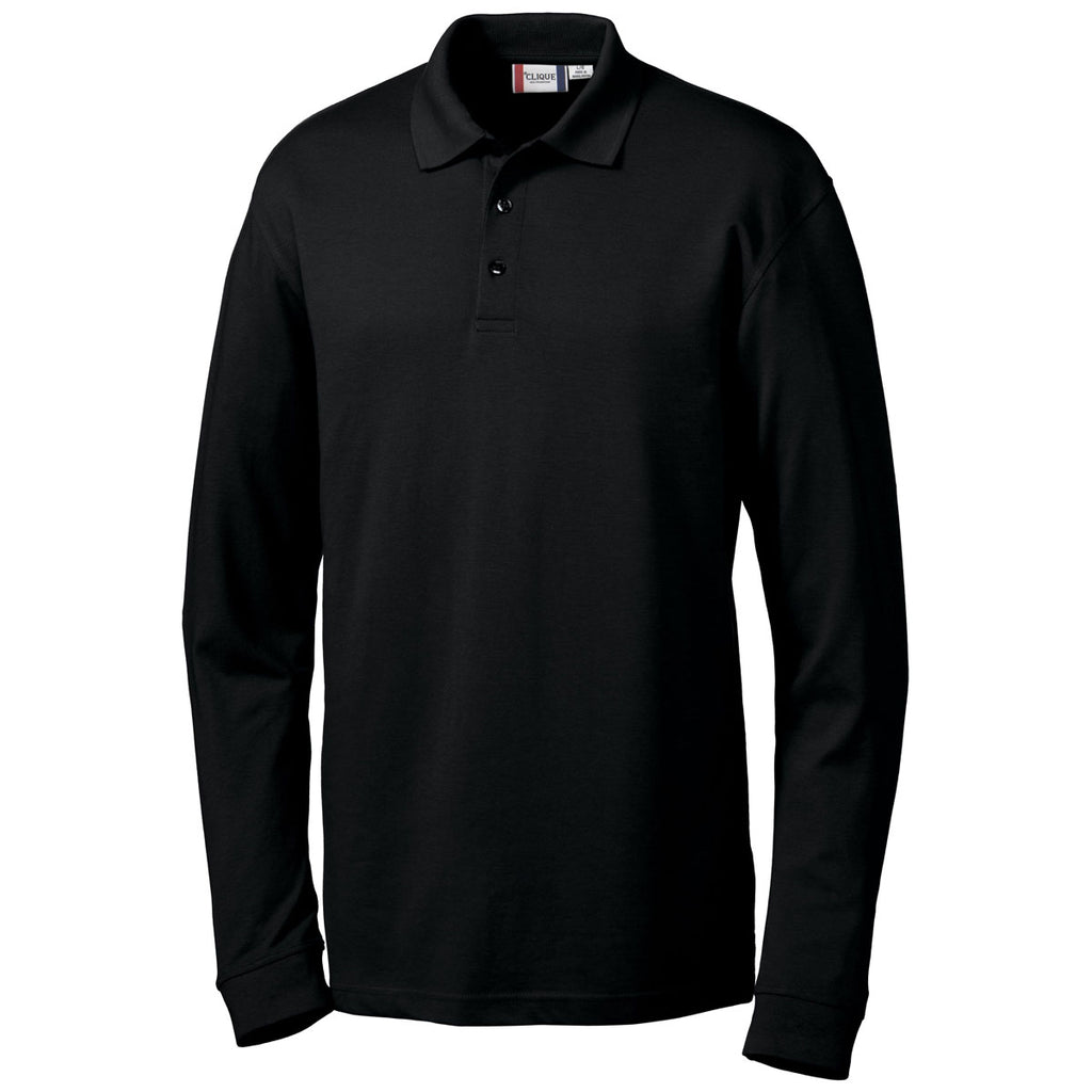 For versatile company apparel, pair the corporate logoed Clique Men's Black Long Sleeve Evans with casual jeans or more formal dress slacks. The blended cottons and polyester fabric delivers super softness and long lasting durability. Add a custom logo on the large embroidery area to connect with professional peers at sales conferences. The 3M stain repel and release finish ensures you look your best throughout a hectic day on the road. Side vents help improve the flow of air around the body to keep you comfortably dry and cool. A touch of spandex improves body movement flexibility.Corresponding Women's Style: Clique Women's Black Long Sleeve Elmira Polo