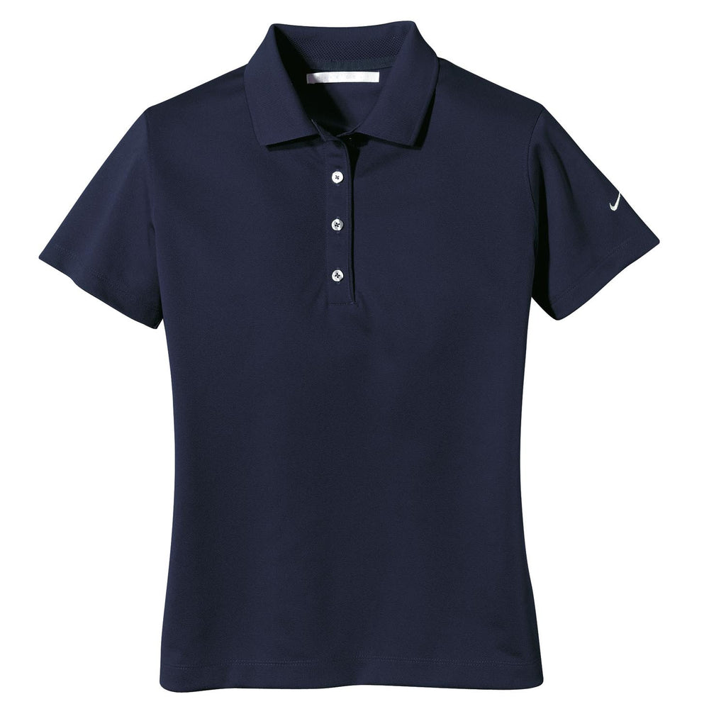 Love the sporty look of the Nike Women's Navy Tech Basic Dri-FIT Short Sleeve Polo? Well, you'll like how it feels and how it fits even more. The Nike Golf Women's Navy Tech Basic Dri-FIT Polo features 100% moisture-wicking polyester fabric, a knit collar, a 4-button placket, open-hem sleeves and pearlized buttons. To finish off the look, the classic Nike Golf Swoosh logo is embroidered on the left sleeve.