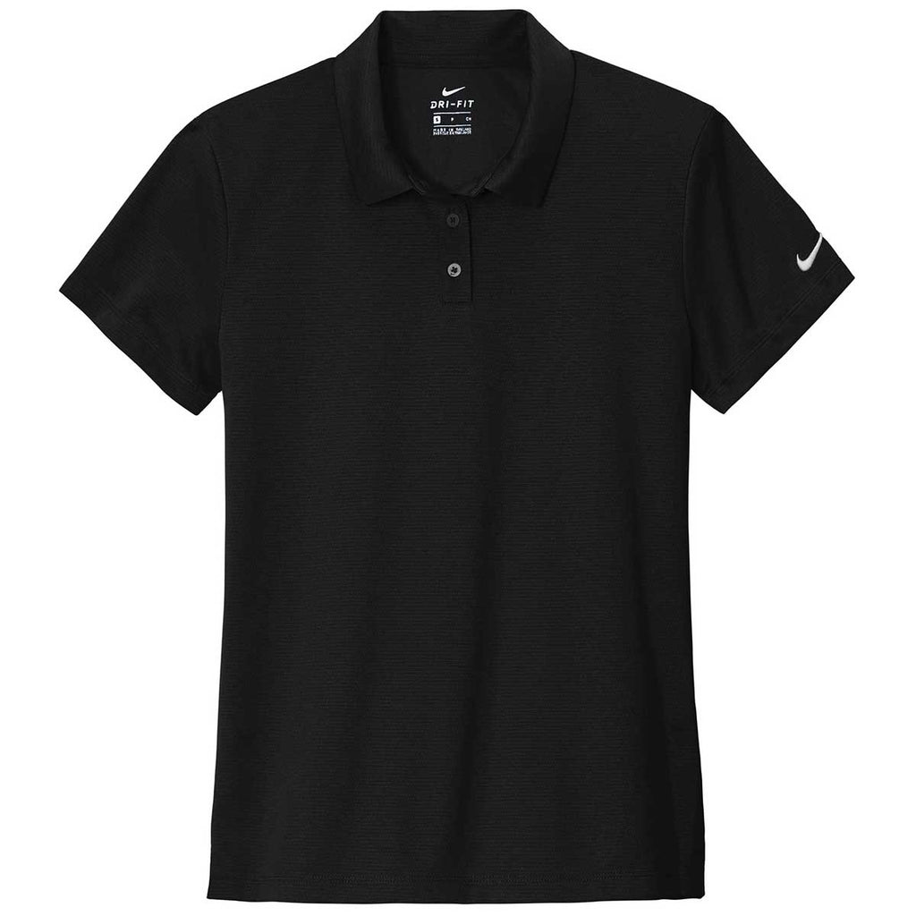 Head to the office or enjoy a round of golf in an embroidered Nike Women's Black Dry Essential Solid Polo. The beautifully made classic polo can be used for anything from a company uniform to a solid choice for a corporate event with an embroidered custom logo. This must have polo provides Dri-FIT moisture management technology so your focus can remain on what you are doing rather than concern for sweat marks. The tailored feminine fit looks great with a custom design. Place an order today to use these as employee or end of the year gifts for all the people you know.
