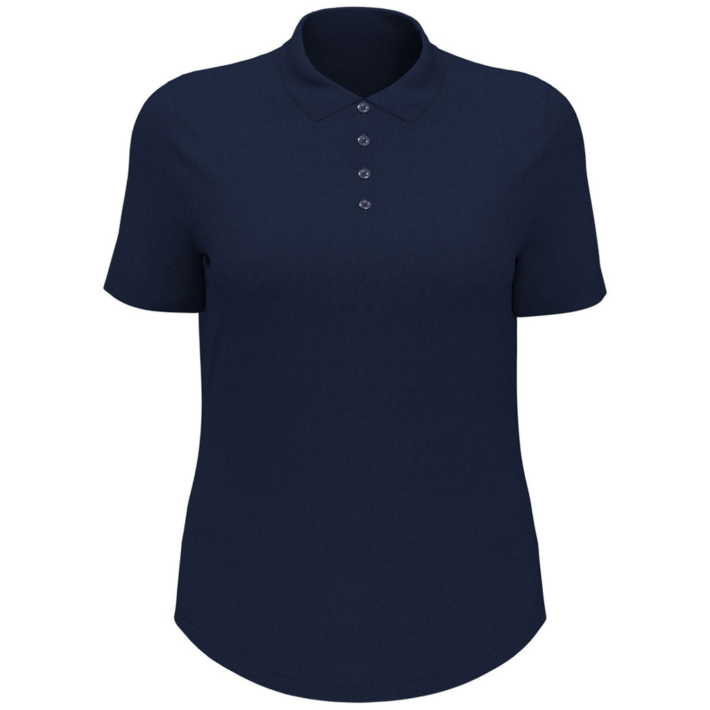 Add a corporate logo to the Original Penguin Women's Black Iris Blue Solid Polo for a uniform option that is easy to wear or enjoy all day long. The simple polo made of polyester and elastane double knit pique fabric is moisture-wicking with a rounded hem and side vents. The uses for this polo are only limited by the imagination. Place an order today.Corresponding Men's Style: Original Penguin Men's Black Iris Blue Solid Polo