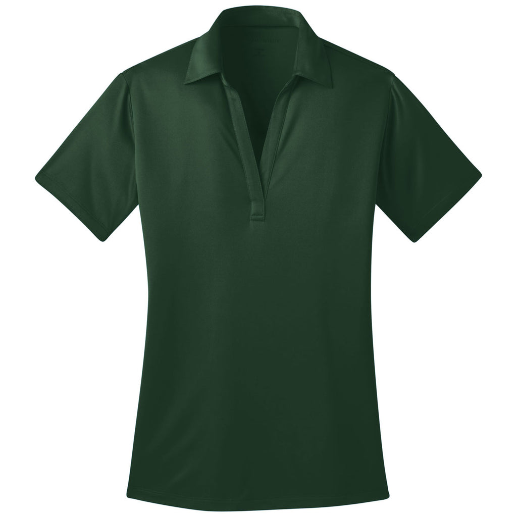 Want a silky fit without fretting over your shirt's fabric? The Port Authority Women's Dark Green Performance Poly Polo delivers on both counts, offering a level of comfort you'd expect from silk but a level of durability you'd expect from well, not silk. This tag-free polo is not only comfortable, but it's also "high-performance," meaning that it's durable enough to handle a 40-hour workweek with ease. It will also hold on to its color and size in the washer after repeated washings, ensuring that you have a comfortable fit day after day. Heck, even if your employees wear this as a work uniform, you may just find that they'll ask you where you got it. Self fabric collar.Corresponding Men's Style: Port Authority Men's Dark Green Performance Poly Polo