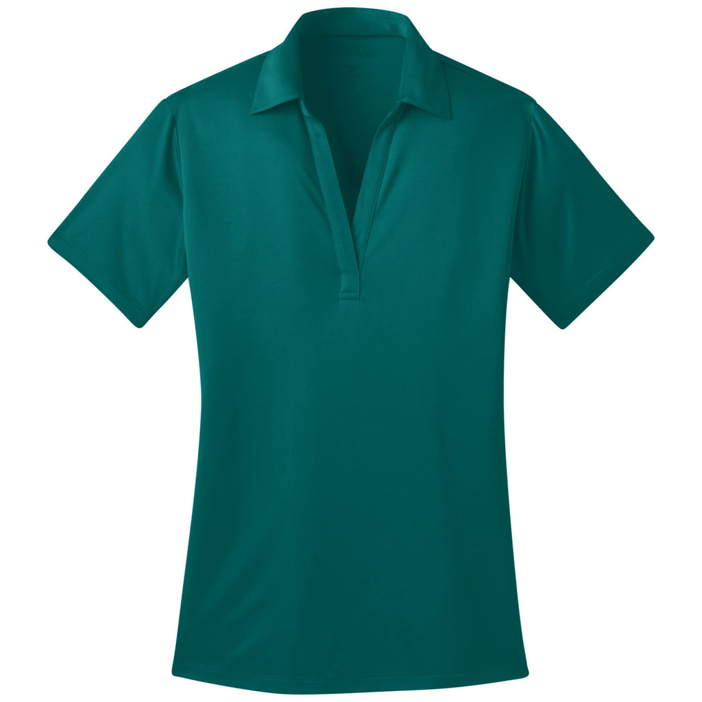 Want a silky fit without fretting over your shirt's fabric? The Port Authority Women's Teal Green Performance Poly Polo delivers on both counts, offering a level of comfort you'd expect from silk but a level of durability you'd expect from well, not silk. This tag-free polo is not only comfortable, but it's also "high-performance," meaning that it's durable enough to handle a 40-hour workweek with ease. It will also hold on to its color and size in the washer after repeated washings, ensuring that you have a comfortable fit day after day. Heck, even if your employees wear this as a work uniform, you may just find that they'll ask you where you got it. Self fabric collar.Corresponding Men's Style: Port Authority Men's Teal Green Performance Poly Polo