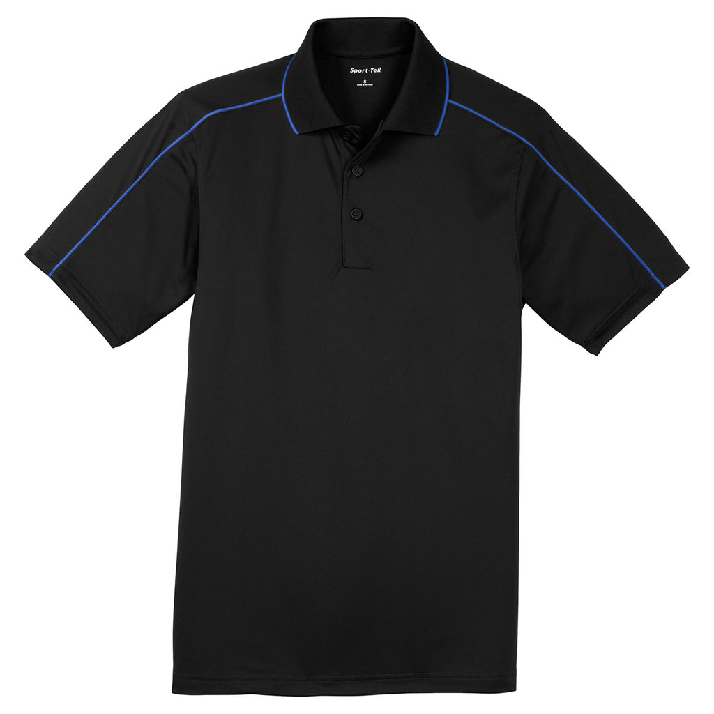 Sport-Tek Men's Black/True Royal Micropique Sport-Wick Piped Polo
