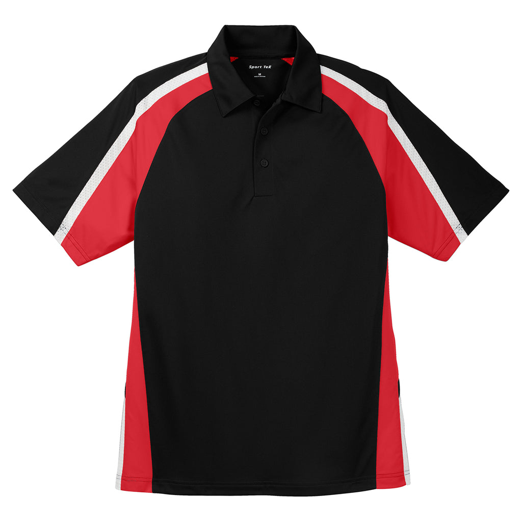 Sport-Tek Men's Black/True Red/White Tricolor Micropique Sport-Wick Polo