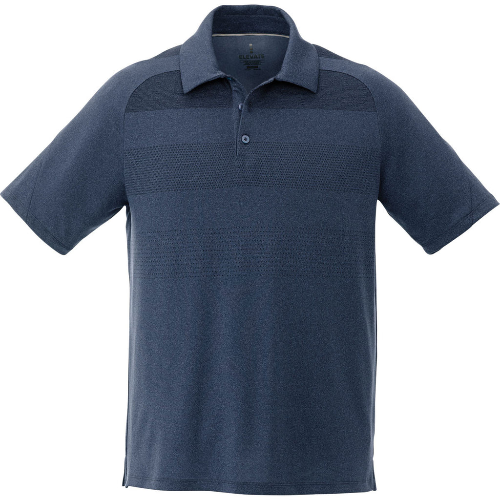 Ever wonder what it looks like when a polo combines athletic prowess with the classic look? Well, stop lighting up those search engines and asking your smart phone, because you've found it. The Elevate Men's Indigo Heather Antero Short Sleeve Polo you see here is not only tough and durable-which is necessary if you want to use it outdoors and get the most out of your "polo experience," so to speak-but it's comfortable and sleek enough to wear in just about any situation. And that's good news, because it means you can get more use from your custom logo when you add it to this polo for gifts, personal use, company use, and more.Corresponding Women's Style: Elevate Women's Indigo Heather Antero Short Sleeve Polo