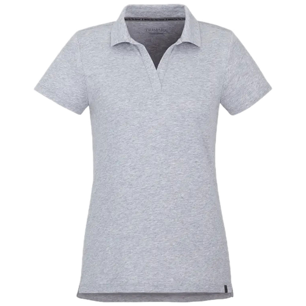 Custom embroidery on the Trimark Women's Heather Grey Somoto Eco Short Sleeve Polo creates an easy to wear look that is great for personal or employee wear. The eco-friendly, recycled poly cotton blend is great for outdoors with UV sun protection and a flattering fit. The short sleeve design is ideal for warmer weather and can be worn alone or layered as needed. Place an order today.Corresponding Men's Style: Elevate Men's Heather Grey Somoto Eco Short Sleeve Polo