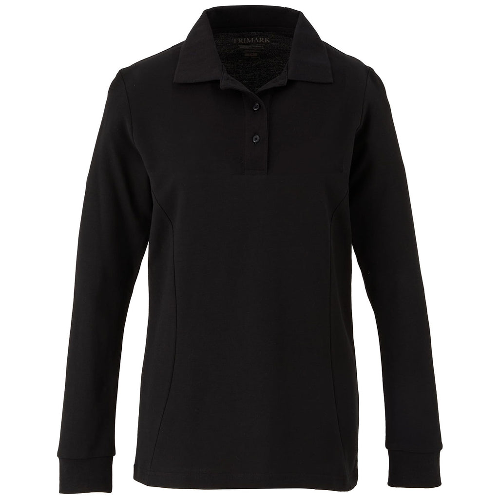 Elevate Women's Black Palo Long Sleeve 100% Cotton Pique Polo