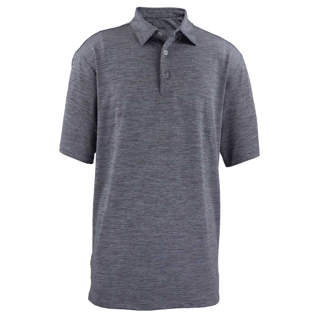 Moisture-wicking performance polos are great for the golf course but can sometimes be a bit too flashy for the office. That's where the Zusa Men's Steel/Black Heather Stripe Polo comes into play. These custom polos provide all of the performance of polyester without the unnecessary added shine. Instead, this polo shirt features a subtle pattern that looks great paired with an embroidered company logo. The Heather Stripe Polo is eco-friendly too, each polo is made using sustainable recycled fabric from 10 plastic water bottles!