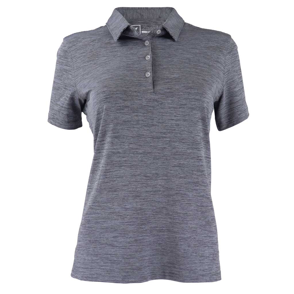 Introducing the Zusa Women's Steel/Black Heather Stripe Polo, a custom polo shirt that brings the performance you're used to on the golf course to the office. These personalized polos ditch the glossy look of traditional polyester polos while holding on to the performance benefits like moisture-wicking, and UV protective fabric. This fabric doesn't just perform though, it's sustainable too. In fact, each of these polos are made using 8 plastic bottles! Just add your custom embroidered company logo to make these polos the ultimate corporate apparel for women.
