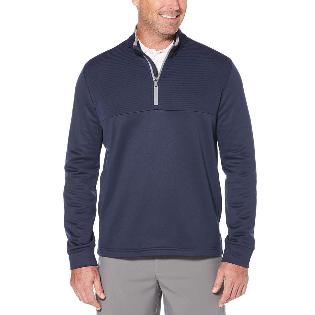Whether headed to a golf event or just in need of comfortable corporate apparel, the Callaway Men's Peacoat Ottoman Fleece Pullover is perfect. Add a company logo to use 1/4 zip as employee apparel for trade shows or every day use as it looks professional while offering full range of movement. Available in peacoat and black, the top portion is in Ottoman style with lined look and a contrasting zipper color. Fitted comfortably, the 1/4 zip with a custom logo is a must have look no matter what activity, work or play. Place an order for just a few or an entire batch to help yourself and your employees look their best each day.