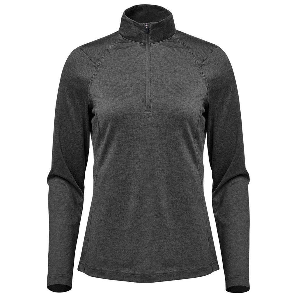 The Stormtech Women's Charcoal Heather Milano Quarter Zip Pullover is ideal for getting active in the great outdoors or looking chic at outdoor events. A perfect blank canvas for your company or team's custom logo or design, this lightweight layering piece offers superior temperature regulation while also ensuring your team members never feel restricted.