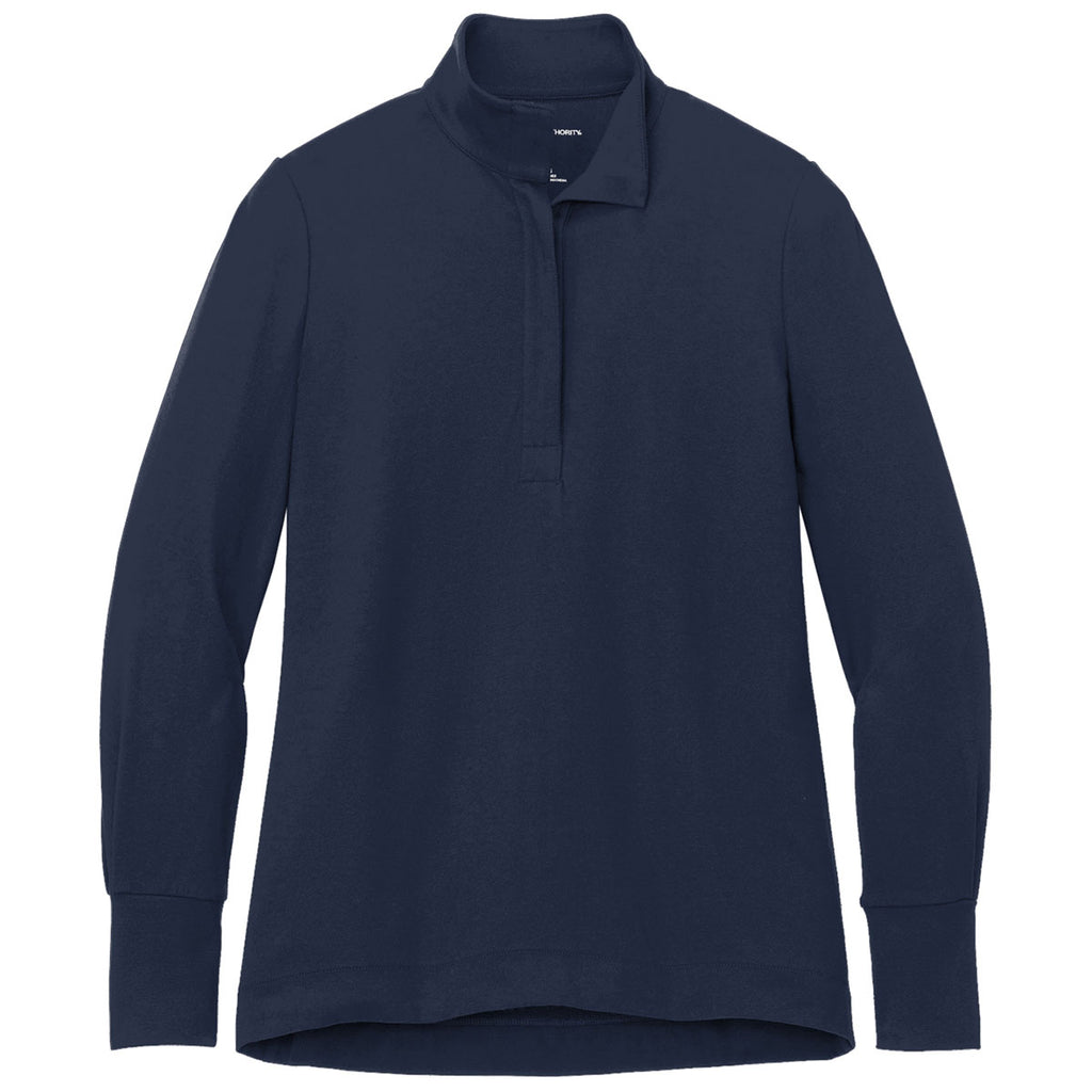 Keep the ladies on your team comfortable in any professional setting by adding your company's custom logo or design to the Port Authority Women's River Blue Navy Fairway Stretch Quarter Zip. Great for getting active, this lightweight pullover is made from a stretch fabric that will never leave you feeling restricted during wear.