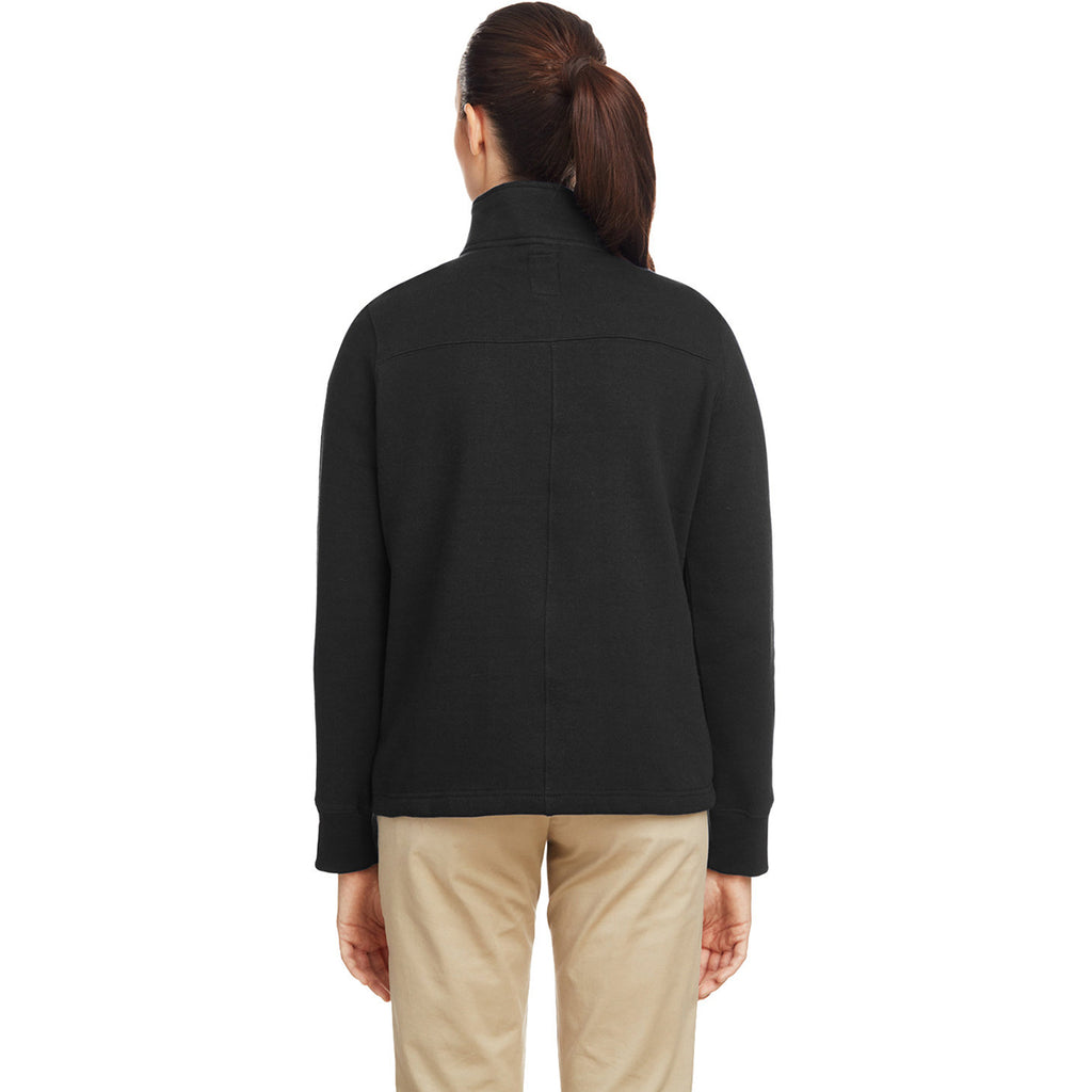 Choose a special embroidery for the Nautica Women's Black Anchor Quarter-Zip Pullover to use as personal wear or employee apparel for the cooler months. A simple quarter-zip that can be worn over almost anything, this cotton polyester fleece blend is soft and comfortable for all day wear. Add a company logo or something custom to create a look unique to your logoed apparel line or to add to your personal wardrobe. Ribbed cuffs and hem offer a better fit whether practicing on the driving range or out hiking with friends.