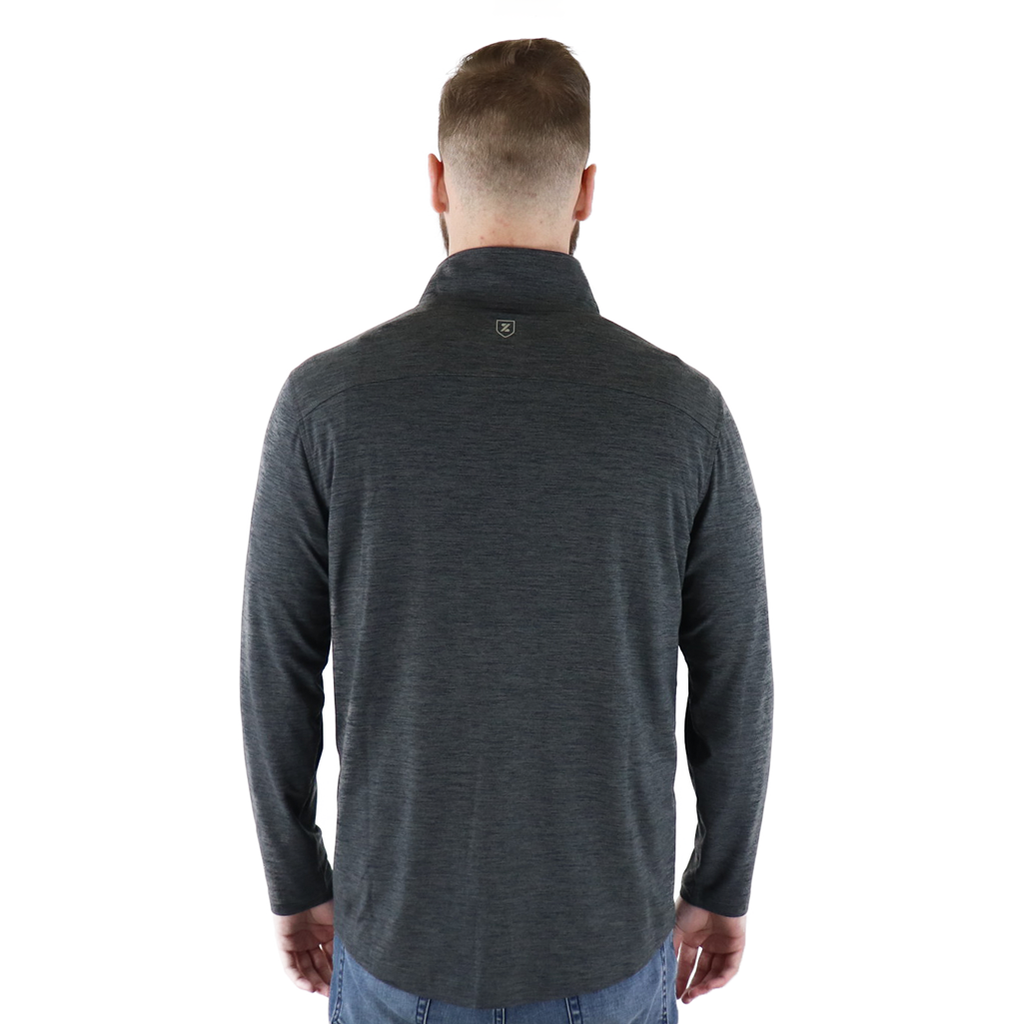 The custom Zusa Brisk Quarter Zip is a versatile layering piece that was made for a wide range of activities. Whether you're looking for a comfortable addition to your casual work wardrobe, or you need a new layer that will accompany you on your next fitness routine, the black heather Brisk Quarter Zip will do the job. With your custom logo on the chest, sleeve or back, you will rep your brand effortlessly in and out of the office. This sustainable sweater style is moisture wicking and made of a polyester-spandex blend to give you breathable comfort all day long.