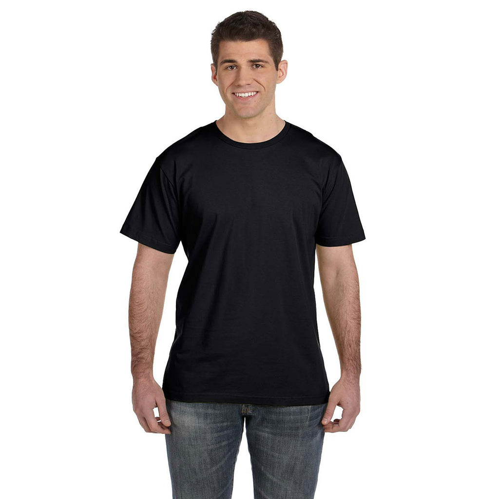 The LAT Men's Black Fine Jersey T-Shirt is the perfect canvas for your company's custom logo. This basic shirt comes in an assortment of colors and features a large cotton fine jersey body that is conducive for displaying a corporate logo or emblem. The ribbed collar adds a ringed look while producing a better grip on the wearer's skin. This shirt is a great choice for casual company uniforms or for company giveaways. It also works well at recruiting events and can be suitable for a company athletic event if desired. Combined with your brand's logo, this shirt is the perfect way to spread the word about your company.Corresponding Women's Style: LAT Women's Black Fine Jersey T-Shirt