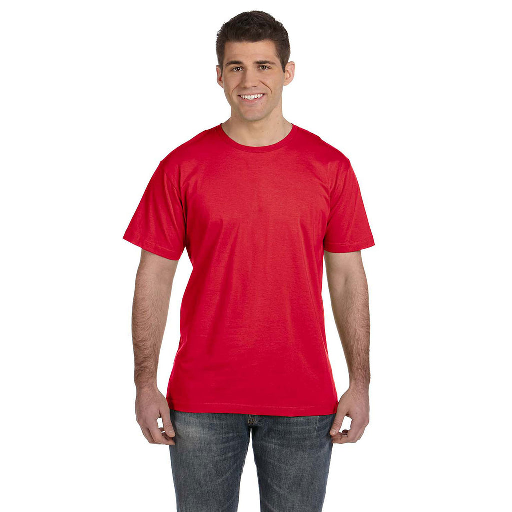 The LAT Men's Red Fine Jersey T-Shirt is the perfect canvas for your company's custom logo. This basic shirt comes in an assortment of colors and features a large cotton fine jersey body that is conducive for displaying a corporate logo or emblem. The ribbed collar adds a ringed look while producing a better grip on the wearer's skin. This shirt is a great choice for casual company uniforms or for company giveaways. It also works well at recruiting events and can be suitable for a company athletic event if desired. Combined with your brand's logo, this shirt is the perfect way to spread the word about your company.Corresponding Women's Style: LAT Women's Vintage Red Fine Jersey T-Shirt
