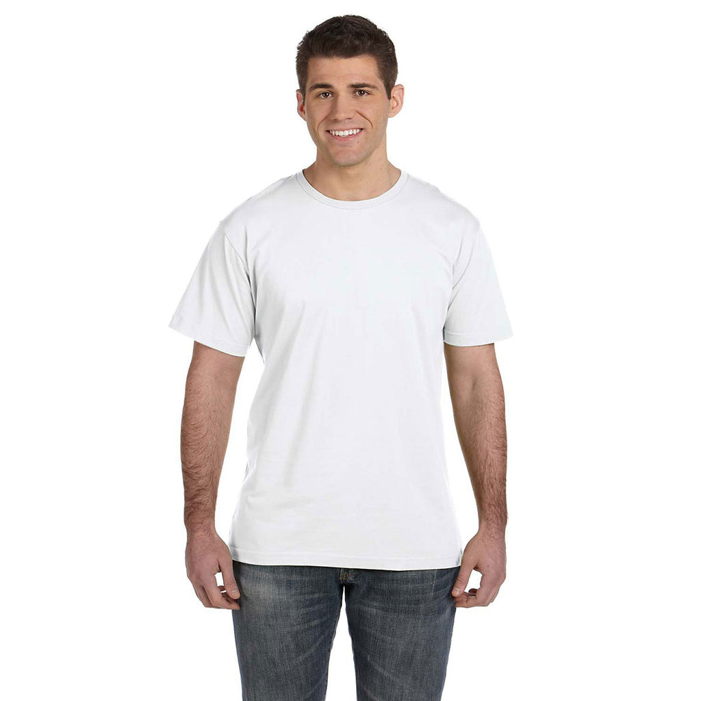 The LAT Men's White Fine Jersey T-Shirt is the perfect canvas for your company's custom logo. This basic shirt comes in an assortment of colors and features a large cotton fine jersey body that is conducive for displaying a corporate logo or emblem. The ribbed collar adds a ringed look while producing a better grip on the wearer's skin. This shirt is a great choice for casual company uniforms or for company giveaways. It also works well at recruiting events and can be suitable for a company athletic event if desired. Combined with your brand's logo, this shirt is the perfect way to spread the word about your company.Corresponding Women's Style: LAT Women's Blended White Fine Jersey T-Shirt