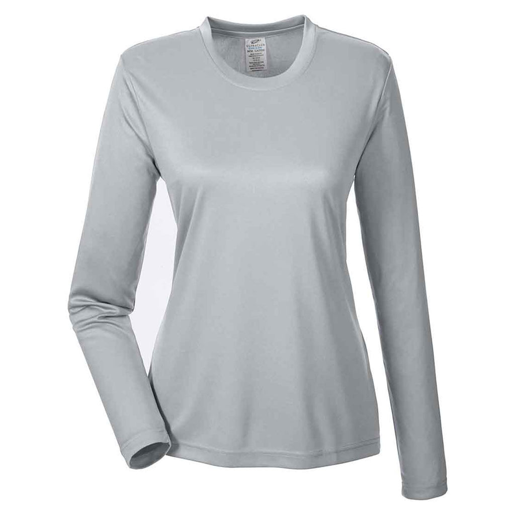 UltraClub Women's Grey Cool & Dry Performance Long-Sleeve Top