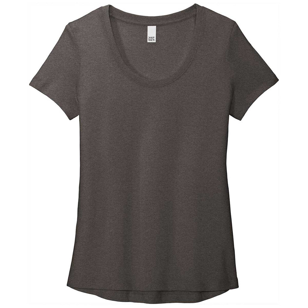 Be comfortable all day with a heat transfer District Women's Heathered Charcoal Flex Scoop Neck Tee. With just a hint of stretch this traditional fitting scoopneck is a combination of combed ring spun cotton, poly, and spandex with a rib knit neck and slight high-low rounded hem. Add a company logo to offer these at trade shows or as employee gifts or add a corporate logo to use as employee uniforms or at team events. This tee is far from basic with the all day comfort that we all want and deserve. A variety of sizes and colors are available to choose from to meet your design needs.Corresponding Men's Style: District Men's Heathered Charcoal Flex Tee