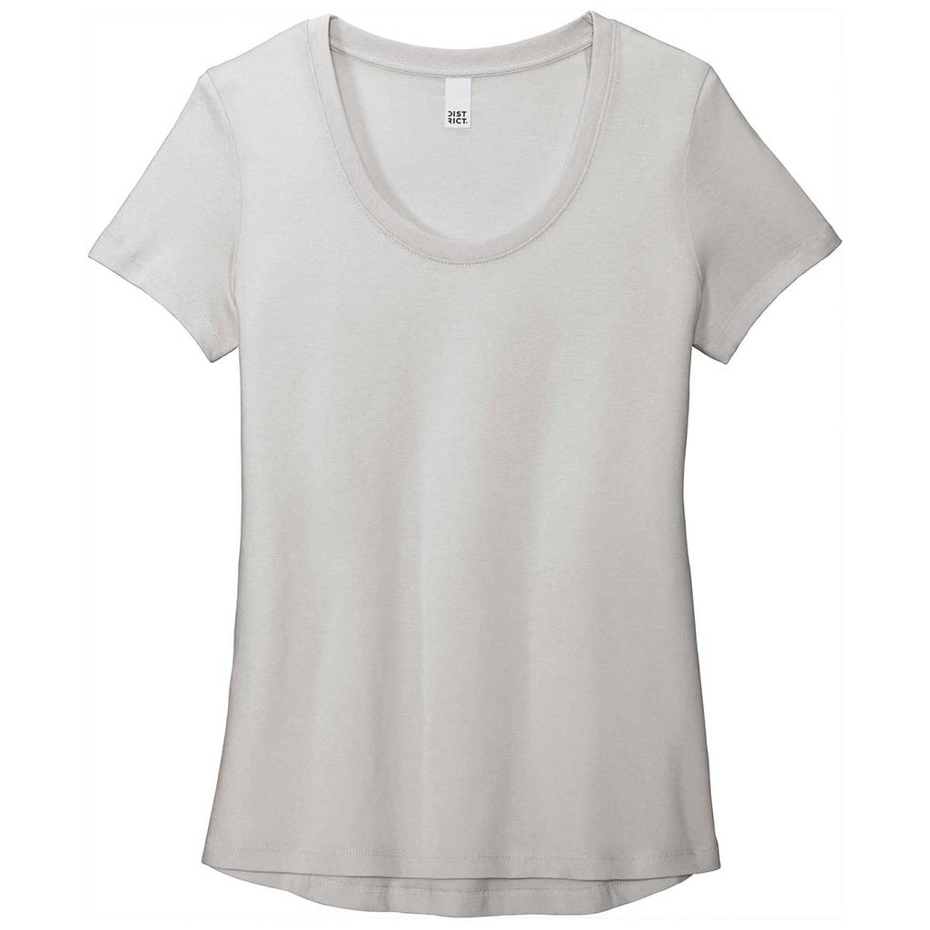 Be comfortable all day with a heat transfer District Women's Silver Mist Flex Scoop Neck Tee. With just a hint of stretch this traditional fitting scoopneck is a combination of combed ring spun cotton, poly, and spandex with a rib knit neck and slight high-low rounded hem. Add a company logo to offer these at trade shows or as employee gifts or add a corporate logo to use as employee uniforms or at team events. This tee is far from basic with the all day comfort that we all want and deserve. A variety of sizes and colors are available to choose from to meet your design needs.Corresponding Men's Style: District Men's Silver Mist Flex Tee