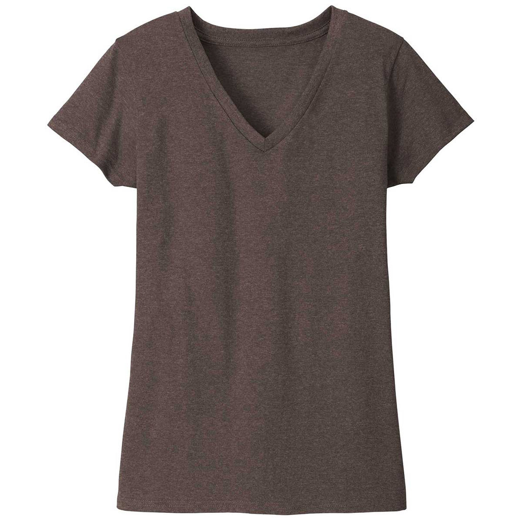 Save the environment with a custom screen print District Women's Deep Brown Heather Re-Tee V-Neck. This affordable, yet comfortable tee is made of 100% recycled materials. The soft, tagless comfort feels good on and can help you feel good about yourself as you are helping out the environment. Add a company logo to use these V-necks as company uniforms or a corporate logo so these tees can be worn for team events. Side vents on the relaxed fitting tee make sure that mobility is not limited. This is a go to choice for nearly every daily routine. Sit at home relaxing with the family or pair with a sweater for work.Corresponding Men's Style: District Men's Deep Brown Heather Re-Tee