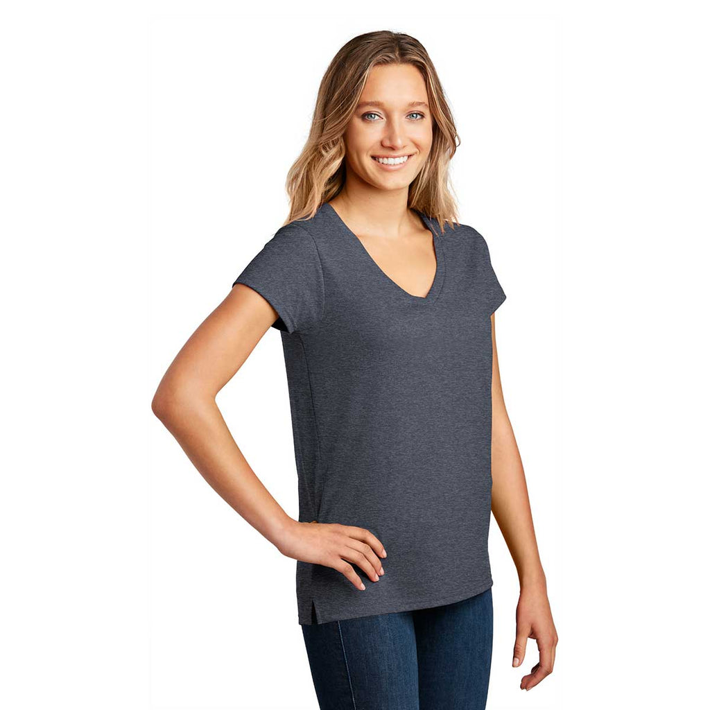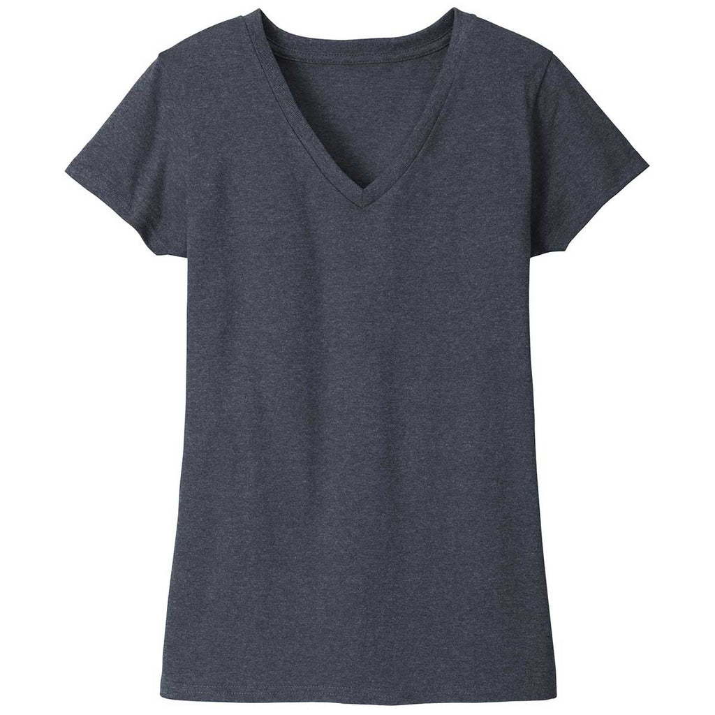 Save the environment with a custom screen print District Women's Heathered Navy Re-Tee V-Neck. This affordable, yet comfortable tee is made of 100% recycled materials. The soft, tagless comfort feels good on and can help you feel good about yourself as you are helping out the environment. Add a company logo to use these V-necks as company uniforms or a corporate logo so these tees can be worn for team events. Side vents on the relaxed fitting tee make sure that mobility is not limited. This is a go to choice for nearly every daily routine. Sit at home relaxing with the family or pair with a sweater for work.Corresponding Men's Style: District Men's Heathered Navy Re-Tee