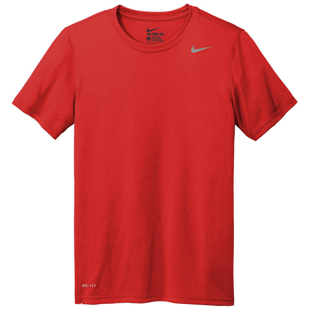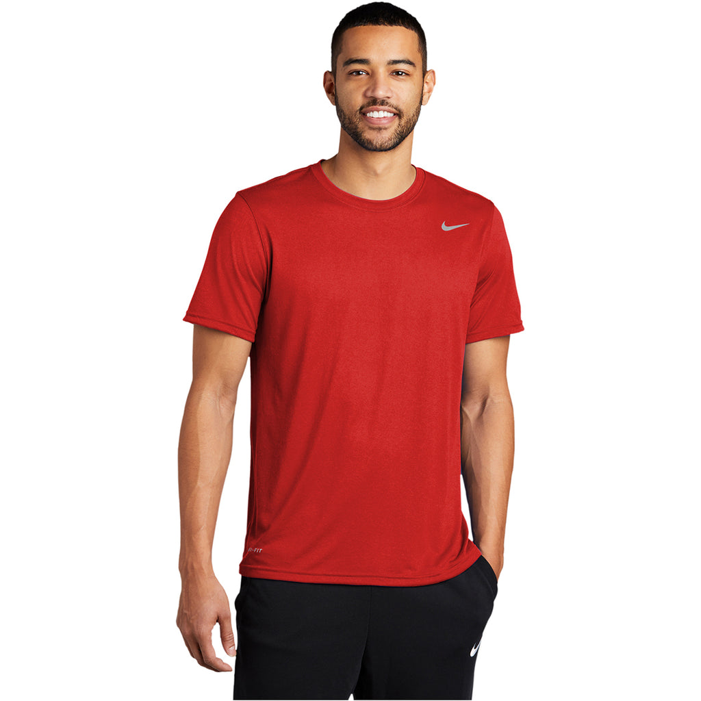 Nike Men's University Red Team rLegend Tee with a custom logo creates the perfect tee for whatever your day holds. The peak performance tee has a low environmental impact and Dri-FIT technology to keep you comfortable thrughout the day. Lightweight enough to serve as workout wear, but stylish enough to wear on the golf course, tennis court, or basketball court. Order today.This product cannot ship outside of the United States.
