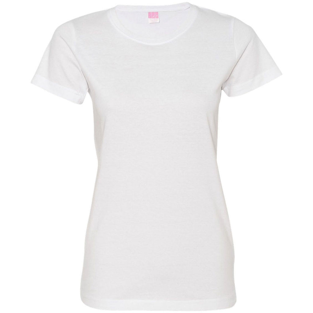 This LAT Women's White Fine Jersey Tee is the perfect canvas for your company's custom logo. The basic design of this t-shirt will make your custom logo stand out without distractions. Both comfortable and flattering, this shirt is a great choice for casual company uniforms or for company giveaways. It also works well at recruiting events and can be suitable for a company athletic event if desired. Combined with your brand's logo, this shirt is the perfect way to market your company outside of the office.