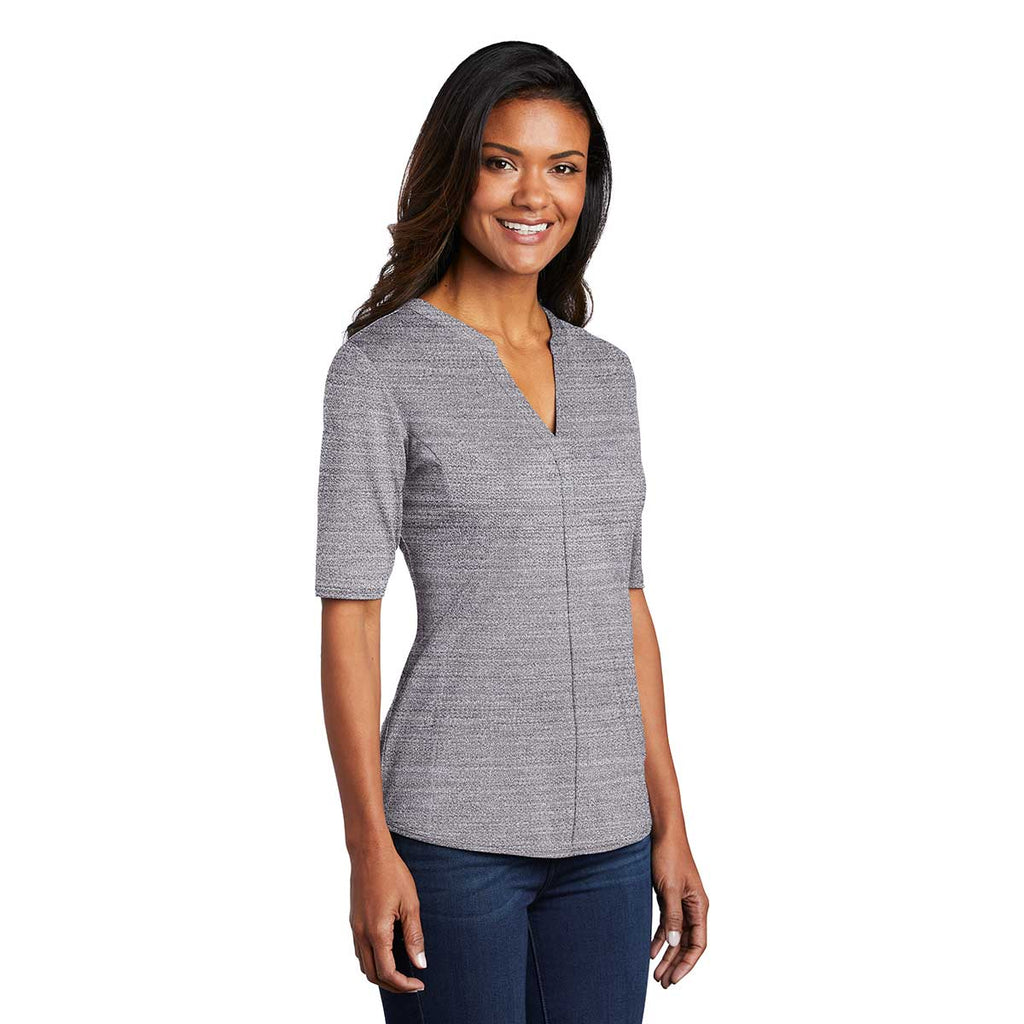 Port Authority Women's Graphite/White Stretch Heather Open Neck Top
