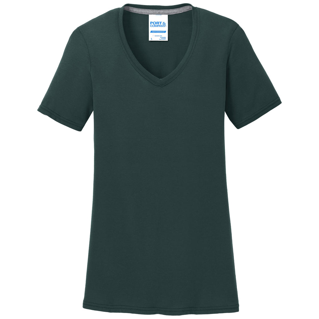 Port & Company Women's Dark Green Performance Blend V-Neck Tee