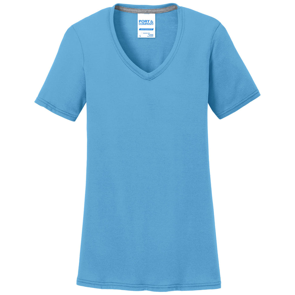 Port & Company Women's Aquatic Blue Performance Blend V-Neck TeeCorresponding Men's Style: Port & Company Men's Aquatic Blue Performance Blend Tee