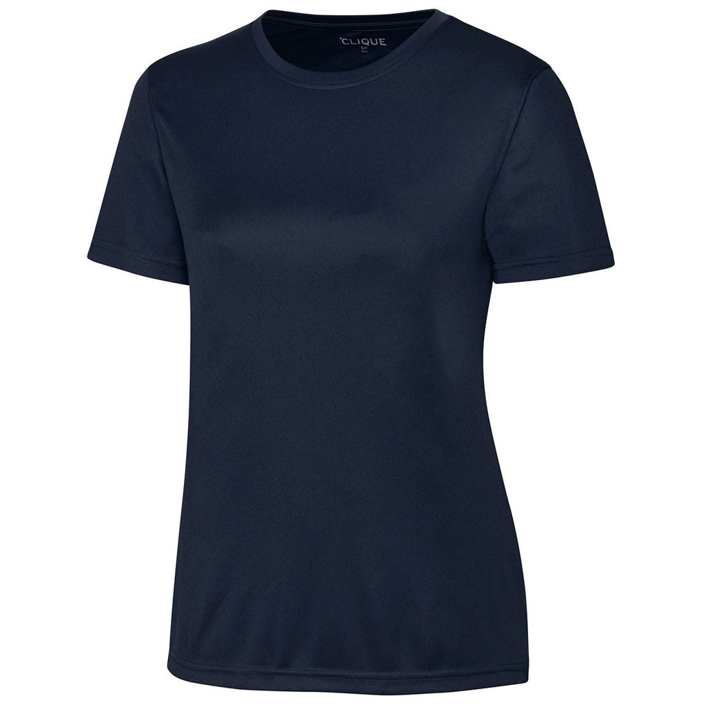 At the next company sponsored golf tournament, hand out Clique Women's Dark Navy Spin Jersey Tee to the female members of your accomplished team. Long lasting color makes the tee perfect for frequent use in a wide variety of competitive athletic events. Designed with 100% spin-dye polyester interlock, the tee handles all of the punishment thrown at it. Add a custom logo to send the message your company stands behind high quality products and services. Open sleeves allow you to rear back and let it rip from the tees and fairways. Self-fabric neck trip adds panache to an already fashionable short sleeve shirt.Corresponding Men's Style:Clique Men's Dark Navy Spin Jersey Tee