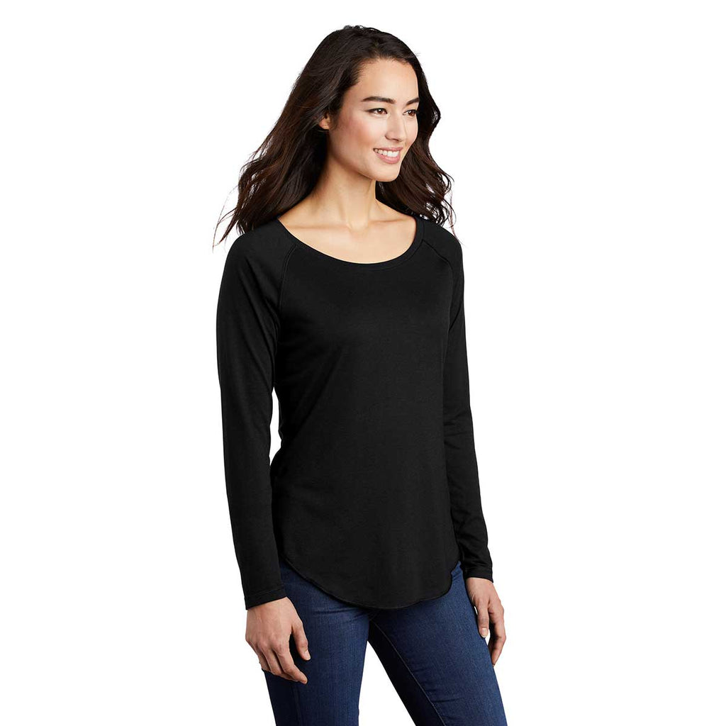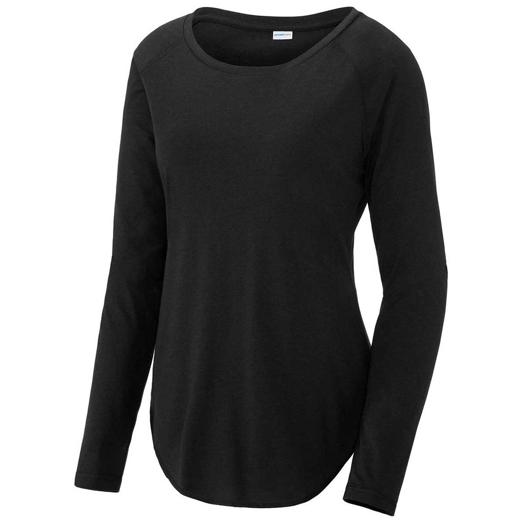 Sport-Tek Women's Black Triad Solid PosiCharge Long Sleeve Tri-Blend Wicking Scoop Neck Raglan Tee