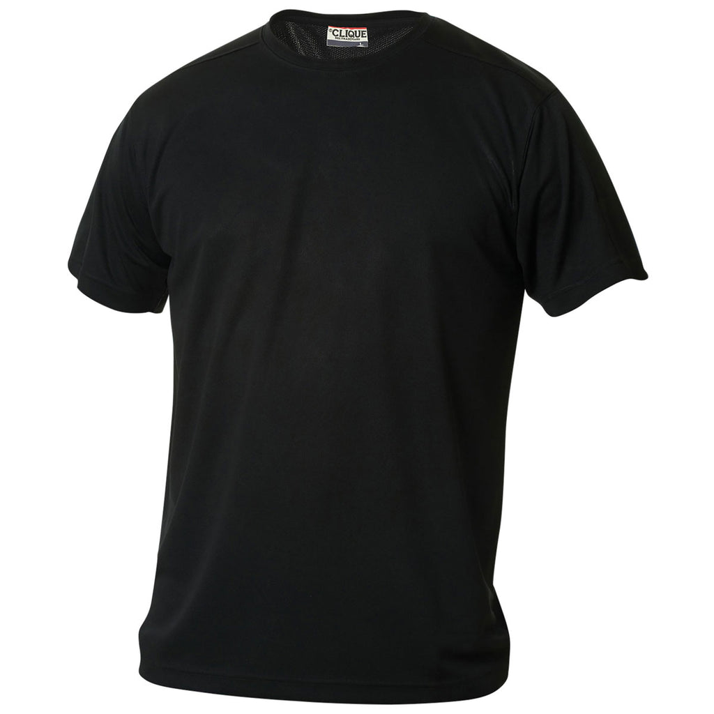 As an only layer for casual company apparel, the corporate logoed Clique Men's Black Ice Tee is the perfect uniform to wear on a softball or in the work-related field when you meet with customers. The 100% polyester mesh fabric allows air to circulate around the back and chest to ensure you remain comfortably cool throughout every busy day. Pieced shoulders present a more upscale appearance for a tee destined to be the shirt you give away at the next corporate golf tournament. Open sleeves improve mobility to help you achieve more power on your golf swing. Screen print a custom logo for broadening your marketing message everywhere you travel.Corresponding Women's Style:Clique Women's Black Ice Tee