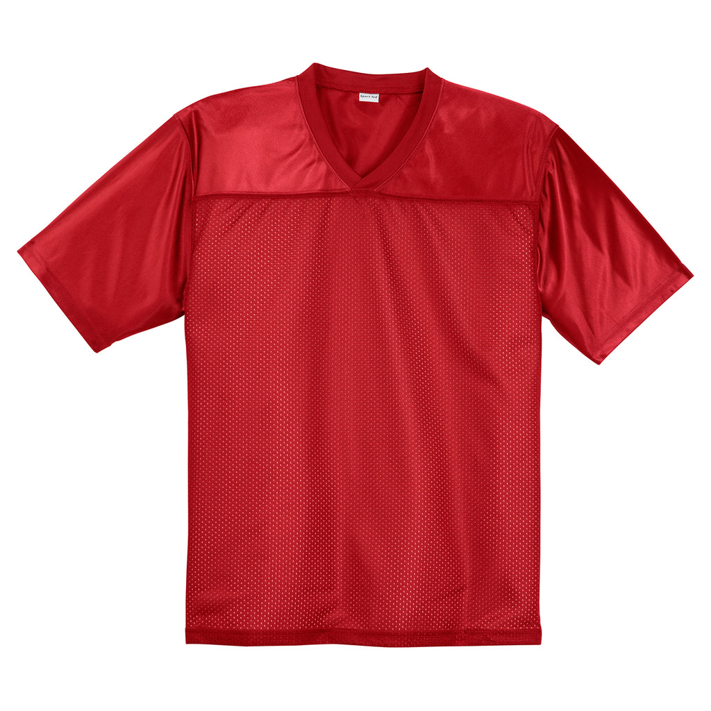 There is a 12 piece minimum on all orders for Sport-Tek t-shirts. This item will be imprinted, not embroidered.Be honest: if there was only one type of upper-body clothing you could bring to a desert island with you, it would be a T-shirt. And it'd probably look something like Sport-Tek Men's True Red PosiCharge Replica Jersey. That's especially true for businesses who need to create some business apparel from items that will enhance their corporate brand.