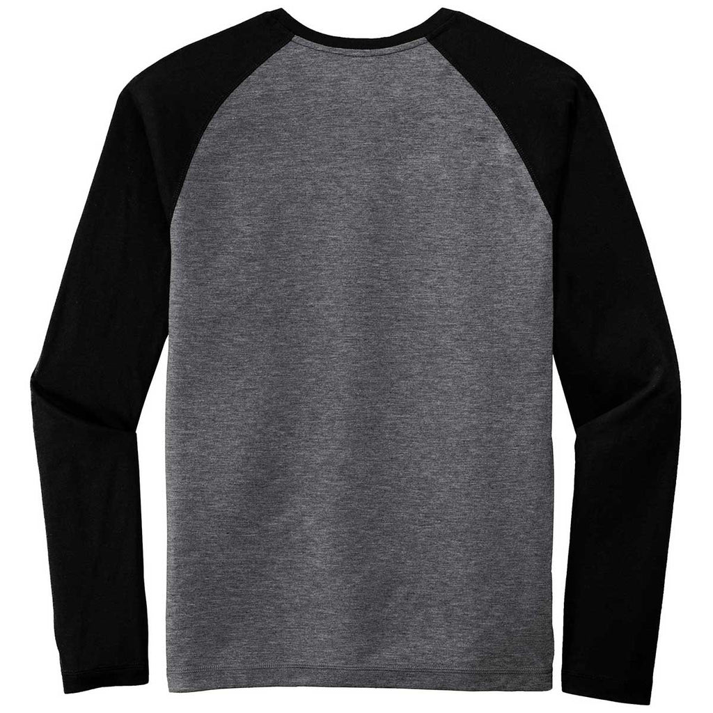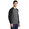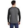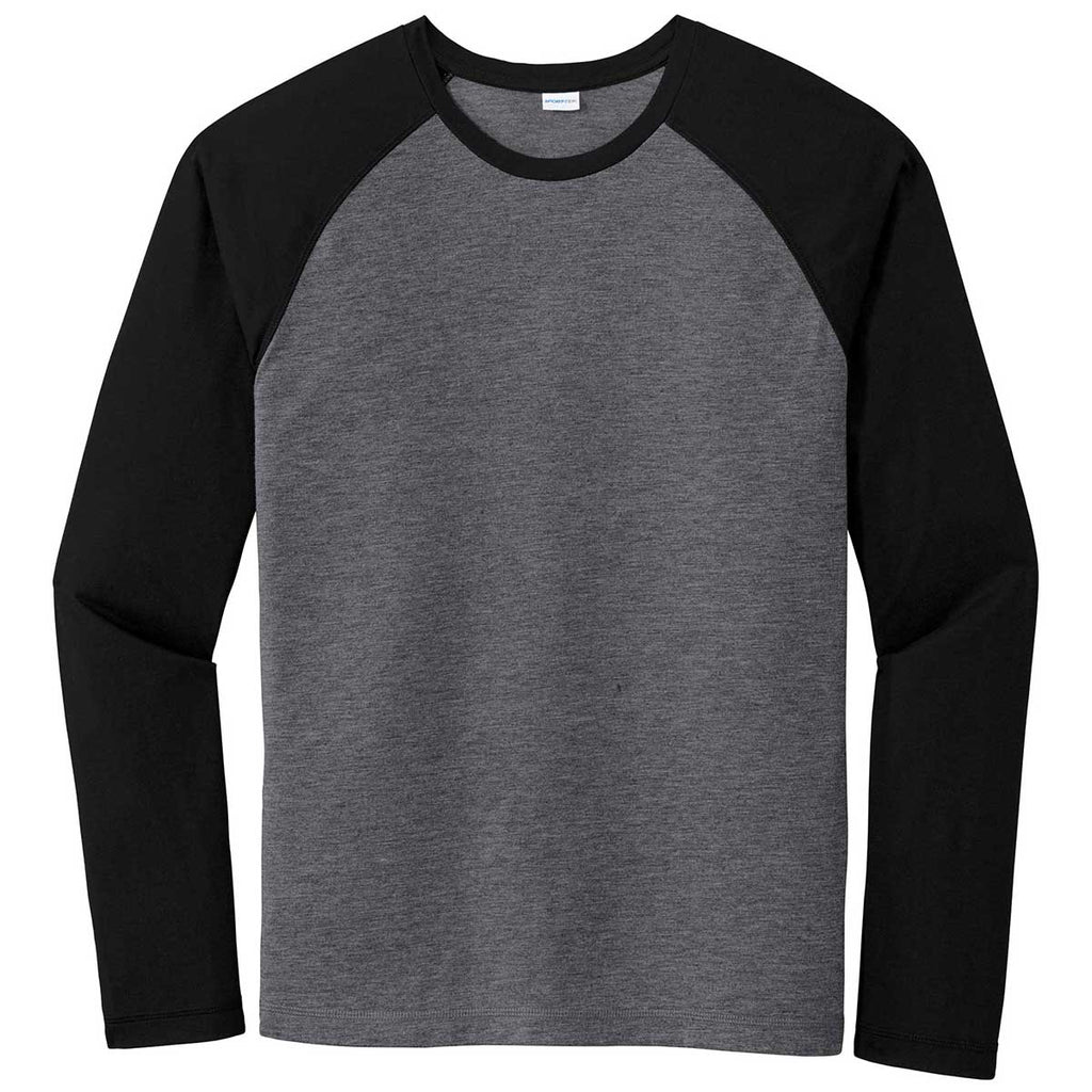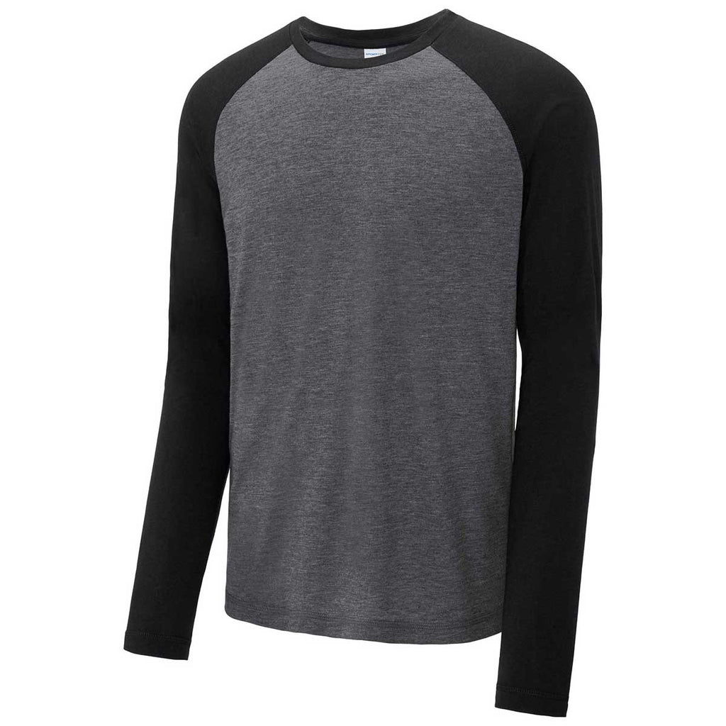 Sport-Tek Men's Black Triad Solid/Dark Grey Heather PosiCharge Long Sleeve Tri-Blend Wicking Raglan Tee