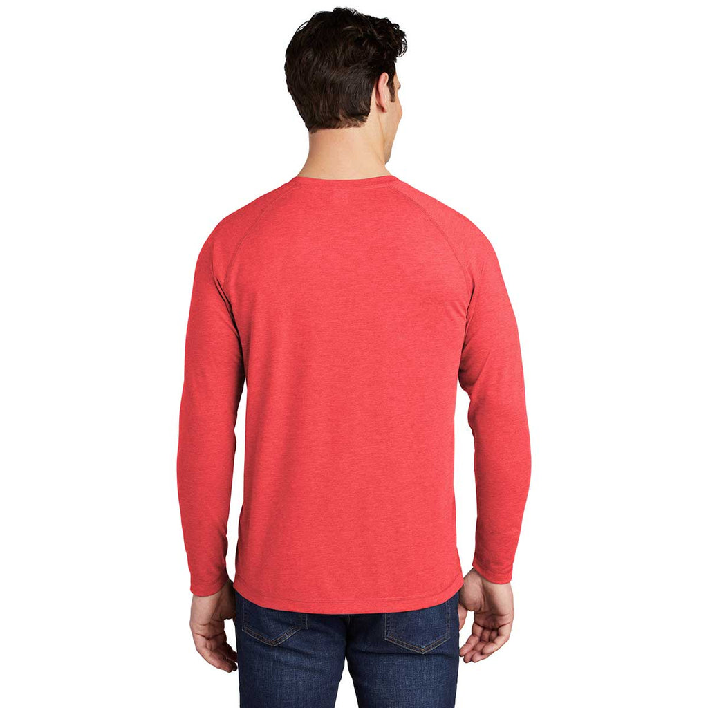 Sport-Tek Men's True Red Heather PosiCharge Long Sleeve Tri-Blend Wicking Raglan Tee