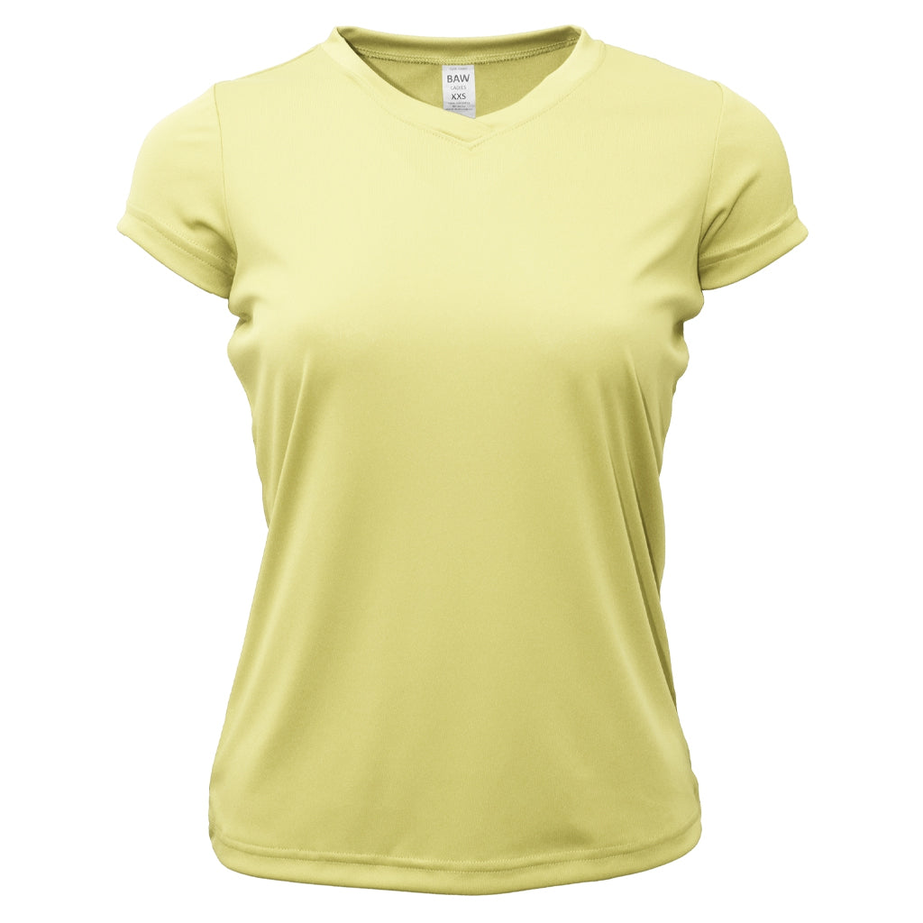 No one could accuse you of not selecting the right color of women's T-shirt for your company sponsored promotion! The BAW Women's Canary Xtreme Tek T-Shirt comes in a variety different shades. Just imagine your custom logo on the front of each one. Your promotion could be the gold at the end of the proverbial rainbow. This ladies' tee is available in sizes 2XS to 3X, and the material is so comfortable and breathable that recipients will wear it every chance they get. This is a tee that will not shrink and also offers UV protection. Whether you're having an anniversary celebration or gift with purchase, you just can't go wrong!Corresponding Men's Style: BAW Men's Canary Xtreme Tek T-Shirt