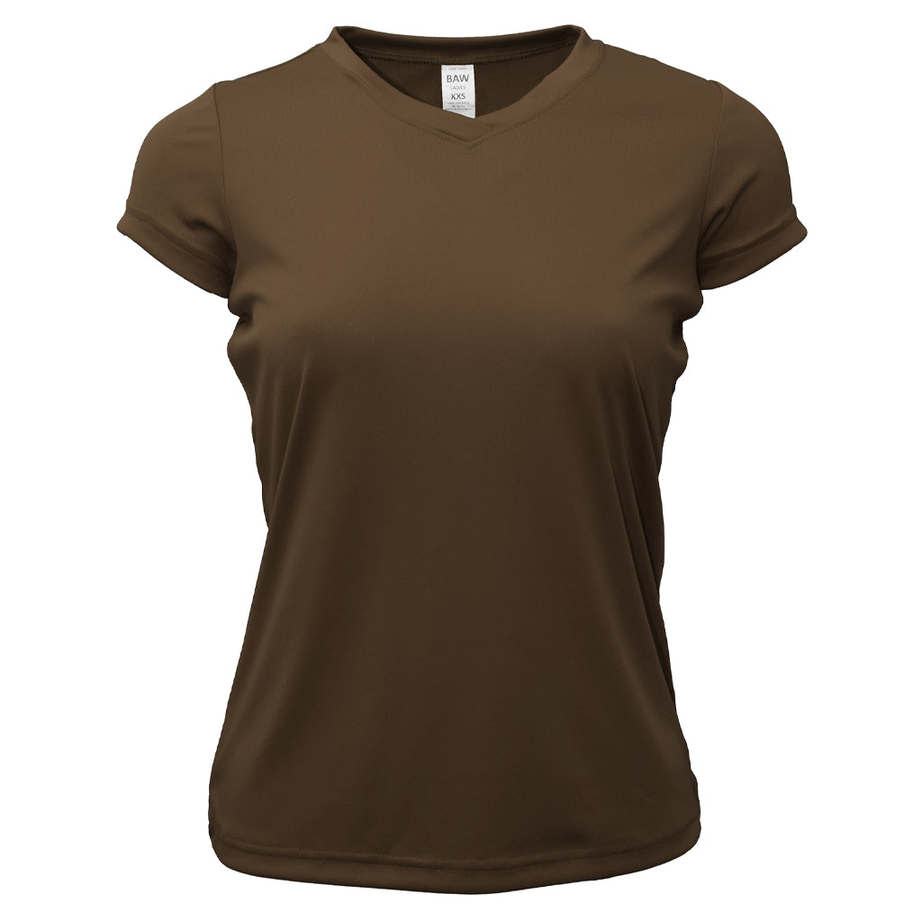 No one could accuse you of not selecting the right color of women's T-shirt for your company sponsored promotion! The BAW Women's Brown Xtreme Tek T-Shirt comes in a variety different shades. Just imagine your custom logo on the front of each one. Your promotion could be the gold at the end of the proverbial rainbow. This ladies' tee is available in sizes 2XS to 3X, and the material is so comfortable and breathable that recipients will wear it every chance they get. This is a tee that will not shrink and also offers UV protection. Whether you're having an anniversary celebration or gift with purchase, you just can't go wrong!Corresponding Men's Style: BAW Men's Brown Xtreme Tek T-Shirt