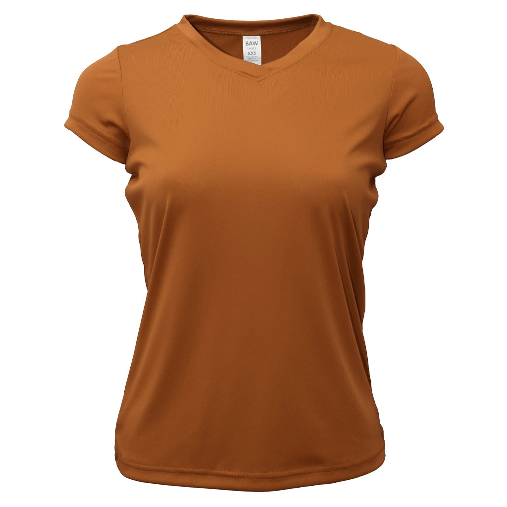 No one could accuse you of not selecting the right color of women's T-shirt for your company sponsored promotion! The BAW Women's Texas Orange Xtreme Tek T-Shirt comes in a variety different shades. Just imagine your custom logo on the front of each one. Your promotion could be the gold at the end of the proverbial rainbow. This ladies' tee is available in sizes 2XS to 3X, and the material is so comfortable and breathable that recipients will wear it every chance they get. This is a tee that will not shrink and also offers UV protection. Whether you're having an anniversary celebration or gift with purchase, you just can't go wrong!Corresponding Men's Style: BAW Men's Texas Orange Xtreme Tek T-Shirt
