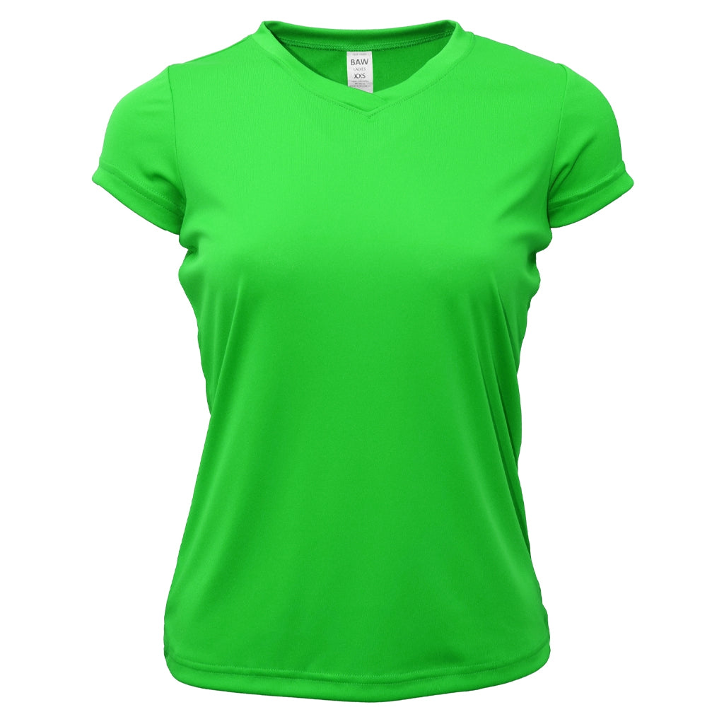 No one could accuse you of not selecting the right color of women's T-shirt for your company sponsored promotion! The BAW Women's Neon Green Xtreme Tek T-Shirt comes in a variety different shades. Just imagine your custom logo on the front of each one. Your promotion could be the gold at the end of the proverbial rainbow. This ladies' tee is available in sizes 2XS to 3X, and the material is so comfortable and breathable that recipients will wear it every chance they get. This is a tee that will not shrink and also offers UV protection. Whether you're having an anniversary celebration or gift with purchase, you just can't go wrong!Corresponding Men's Style: BAW Men's Neon Green Xtreme Tek T-Shirt
